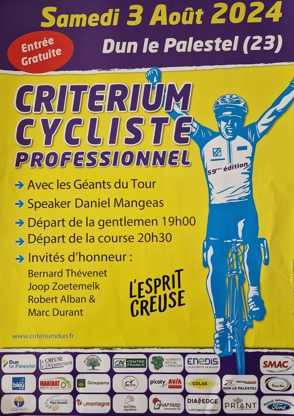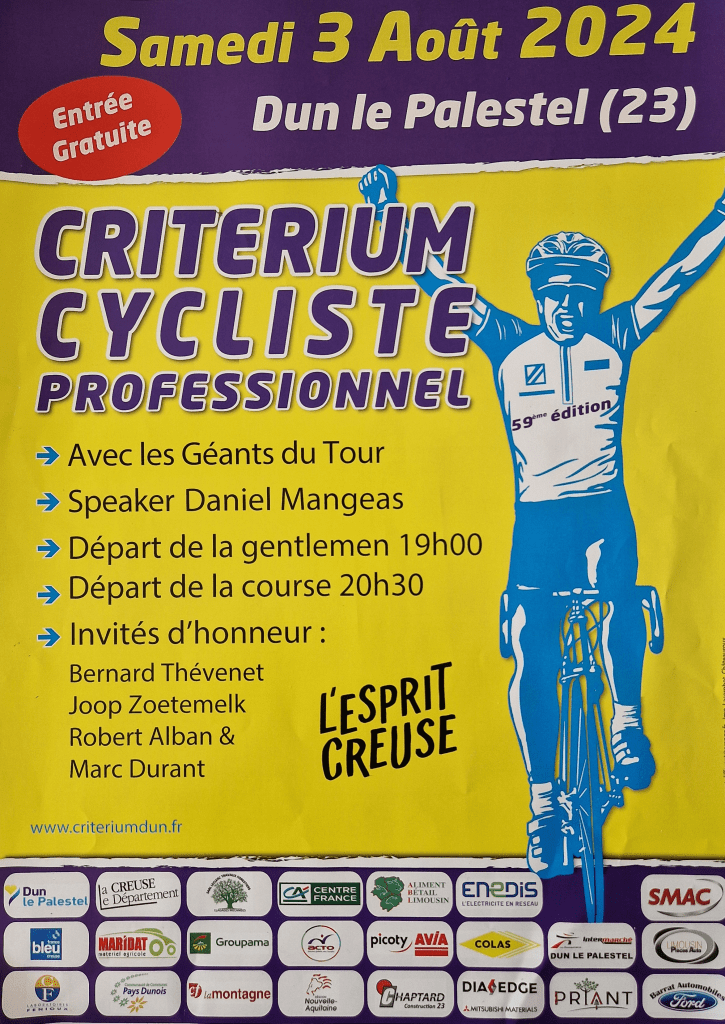 Voici l’affiche officielle de la 59ème édition du critérium cycliste professionnel de Dun-le-Palestel !